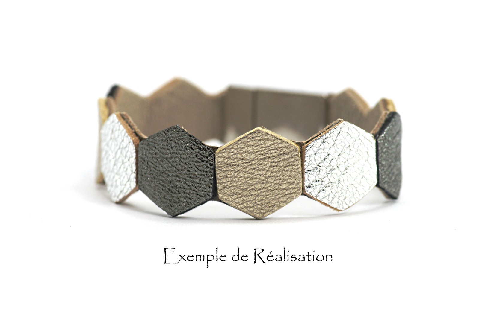 Dimension des hexagones de cuir : Diagonales : 14 x 16 mm ; côtés : 8 mm