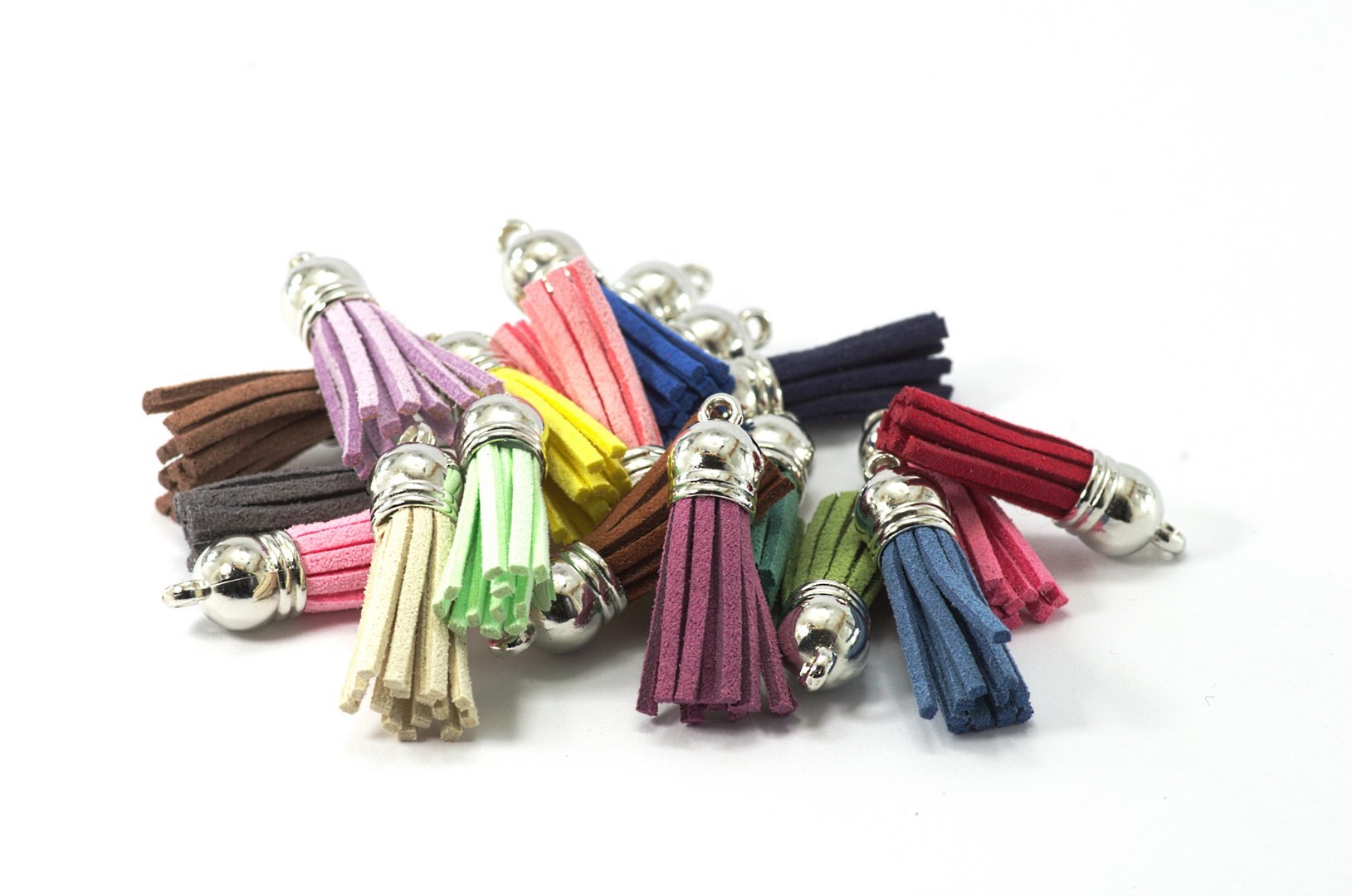 Lot de 6 breloques Pompons / Gland en Suédine