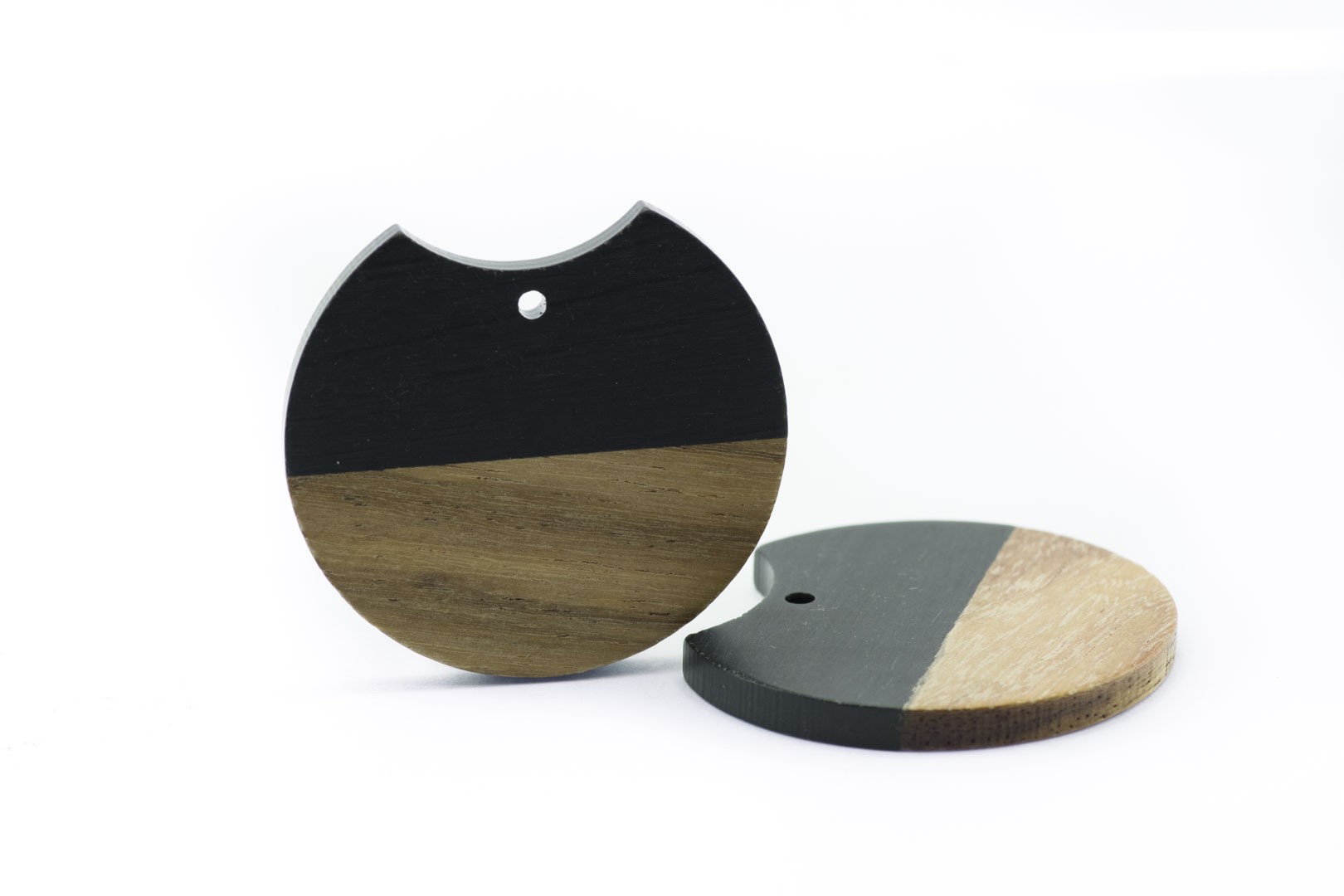 Lot de 2 Breloques / Pendentifs en Bois et Résine colorée