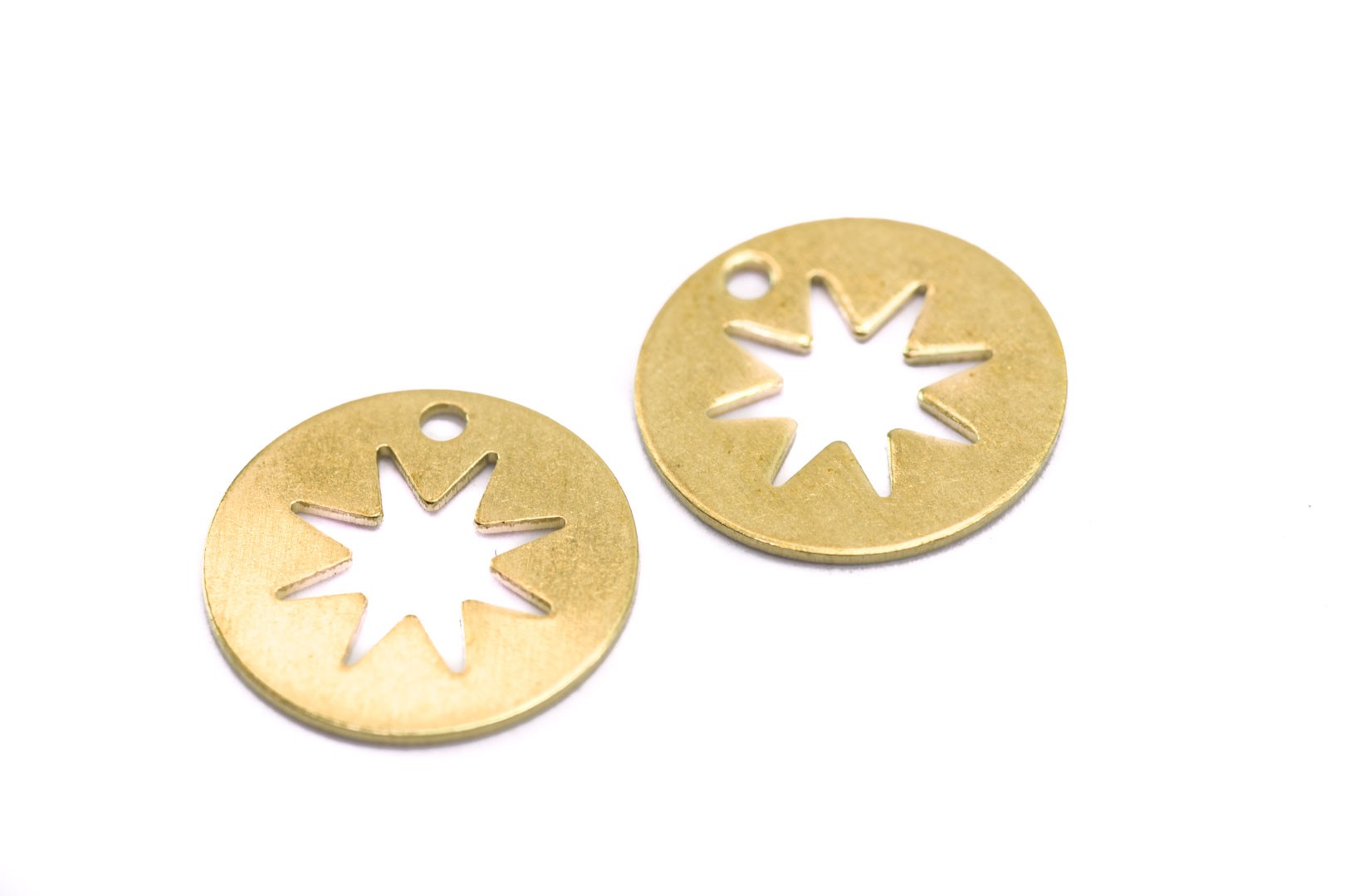 10 Breloques Ronde avec Soleil évidé en Laiton Brut - Diam. : 12 mm - Couleur Doré