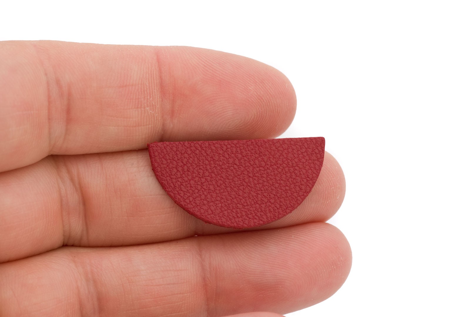Demi-Cercles, Demi-Lunes de cuir Rouge Sombre - Dim. 30 x 15 mm - Lot de 6