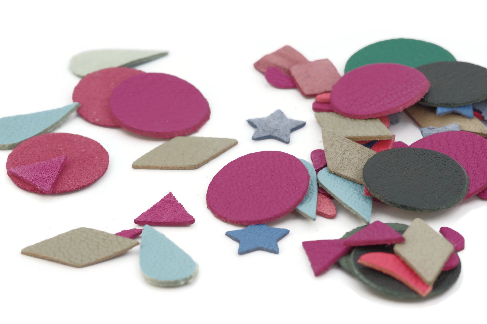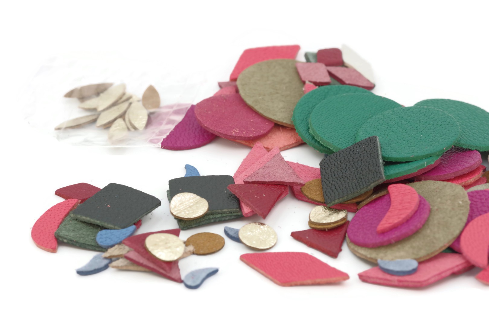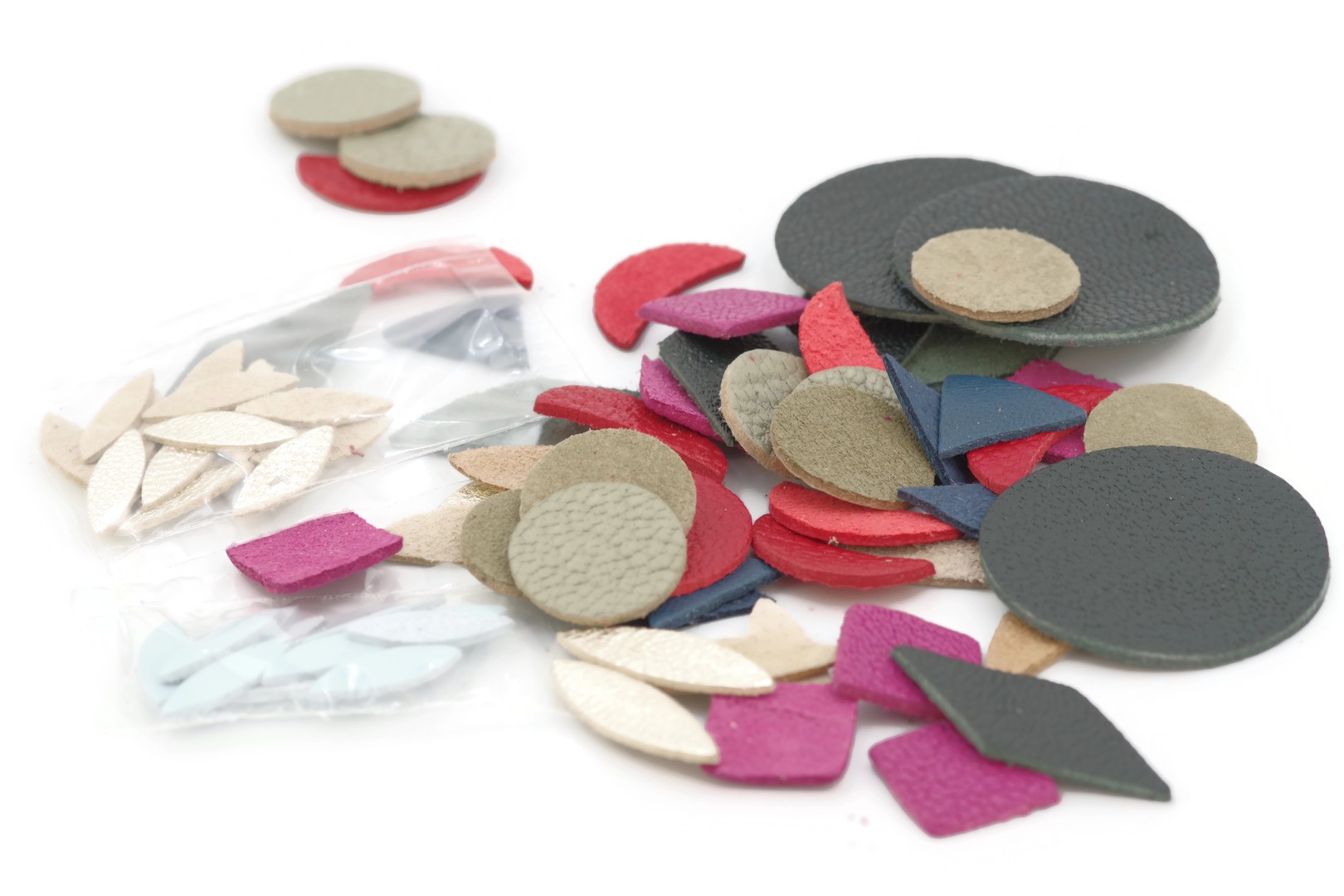 Lot suprise composé de formes géométriques différentes en Cuir de chèvre et Cuir d'agneau.