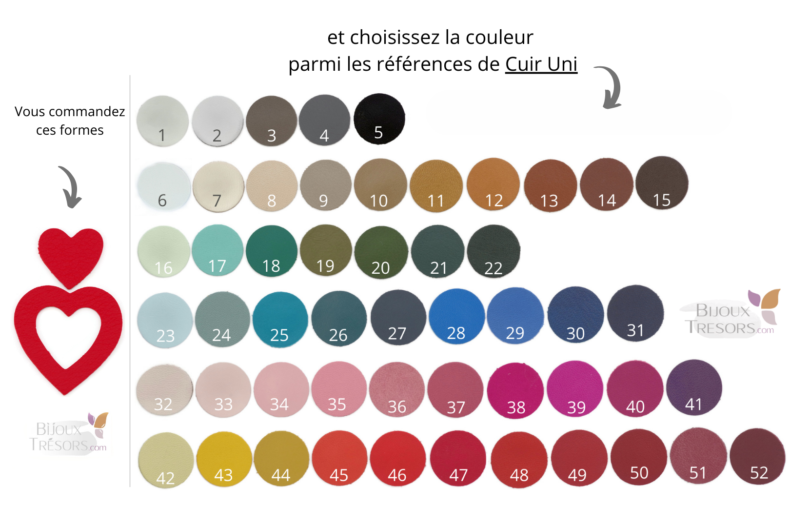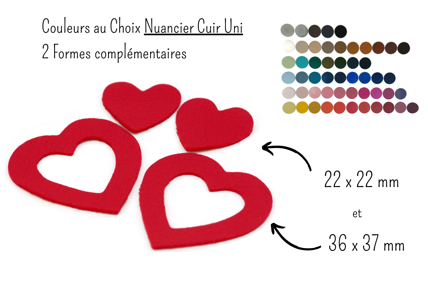 Coeurs de cuir - Dimensions et Couleurs au...