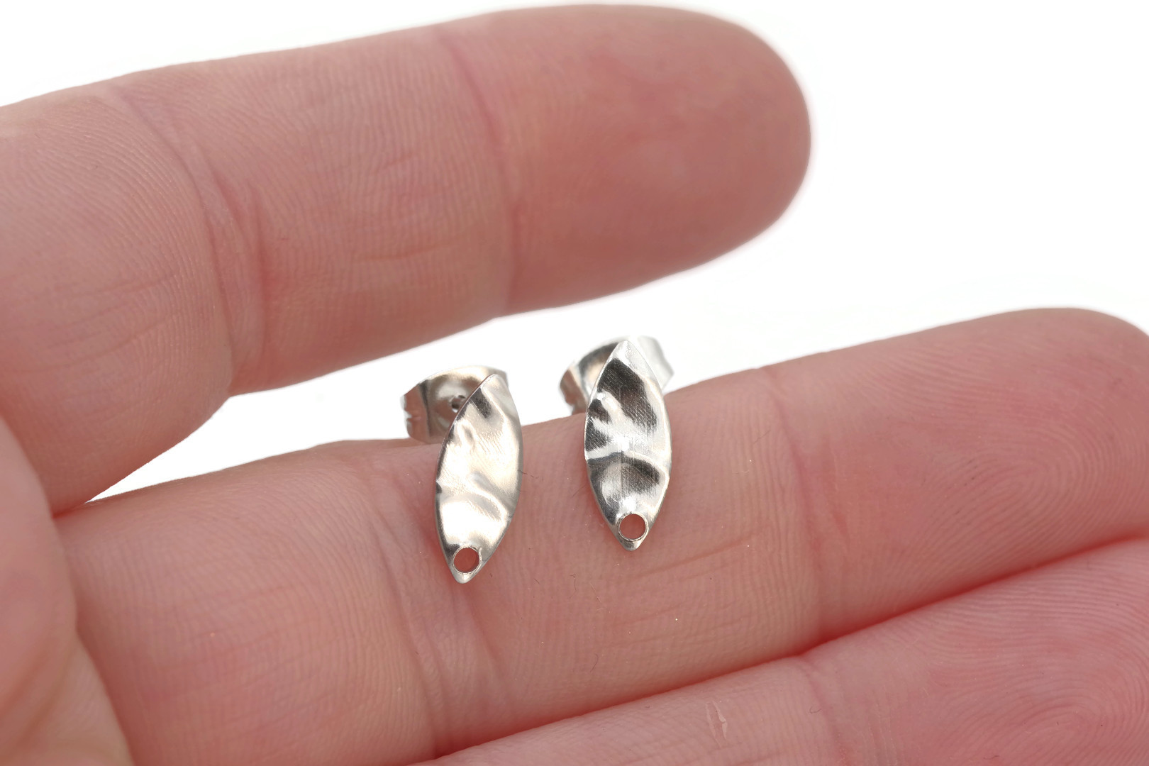 Lot de 2 Puces d'oreilles en Acier Inoxydable, aspect légèrement martelé