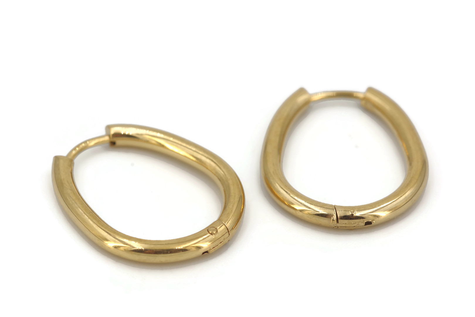 2 Créoles goutte lisses – Acier Inoxydable doré – 22 x 18 x 2.5 mm – Fermoir huggie