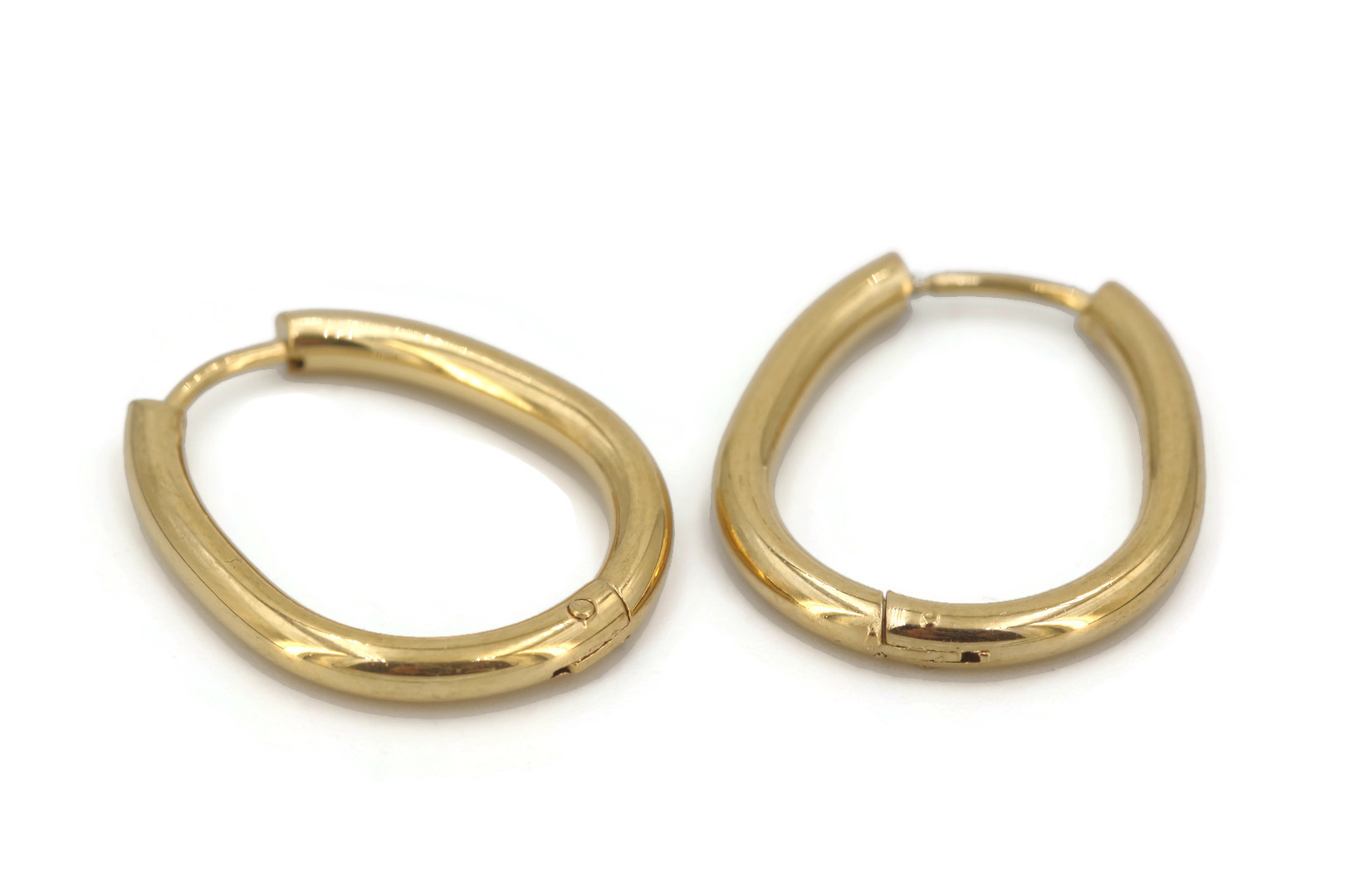 2 créoles goutte en acier inoxydable doré – Dimensions 22x18x2.5 mm – Fermoir huggie