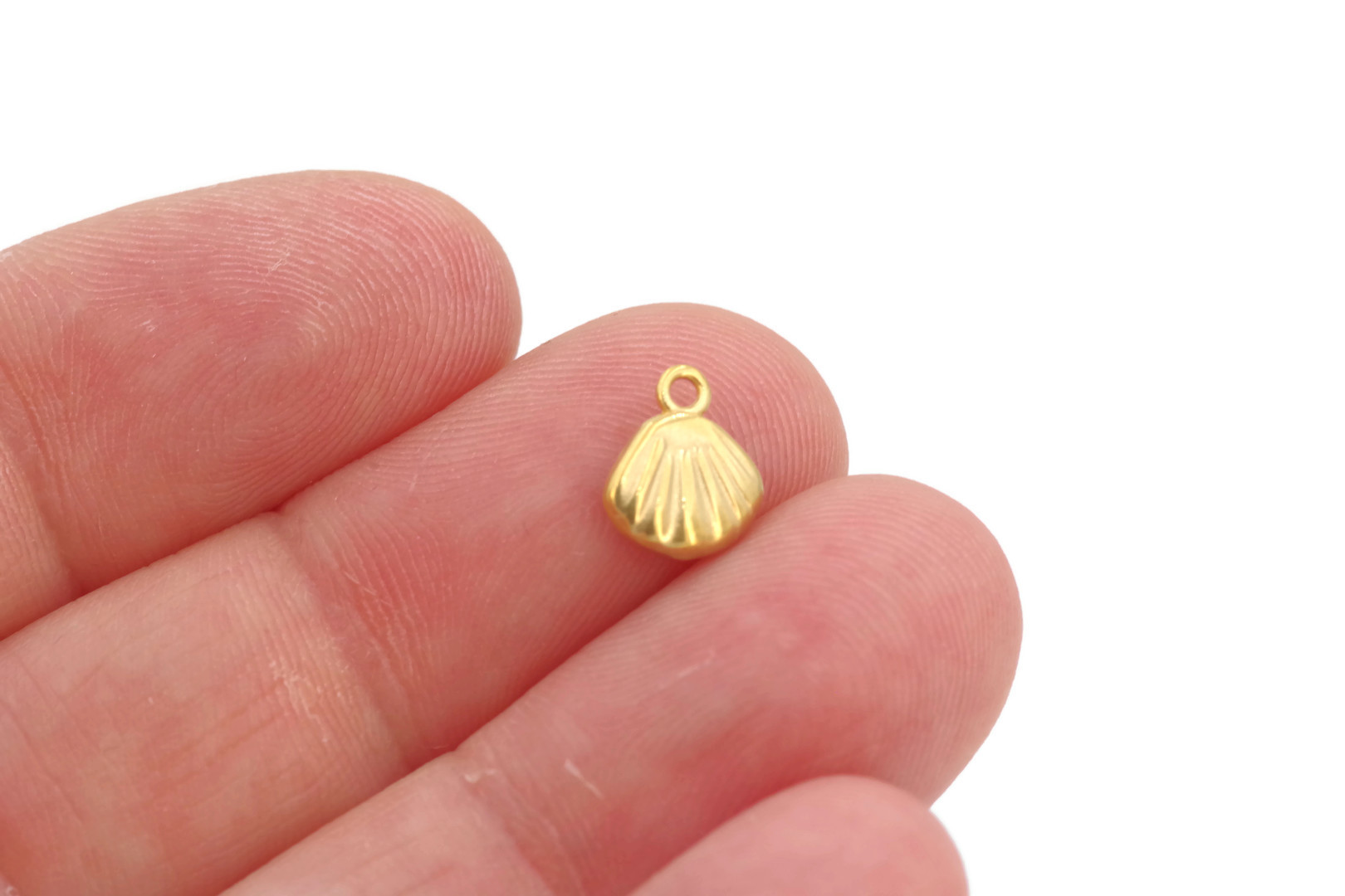 Ajoutez une touche estivale à vos créations avec cette délicate breloque coquillage bombé en acier inoxydable doré, parfaite pour composer des colliers charms tendance ou des bijoux DIY inspirés de la mer.