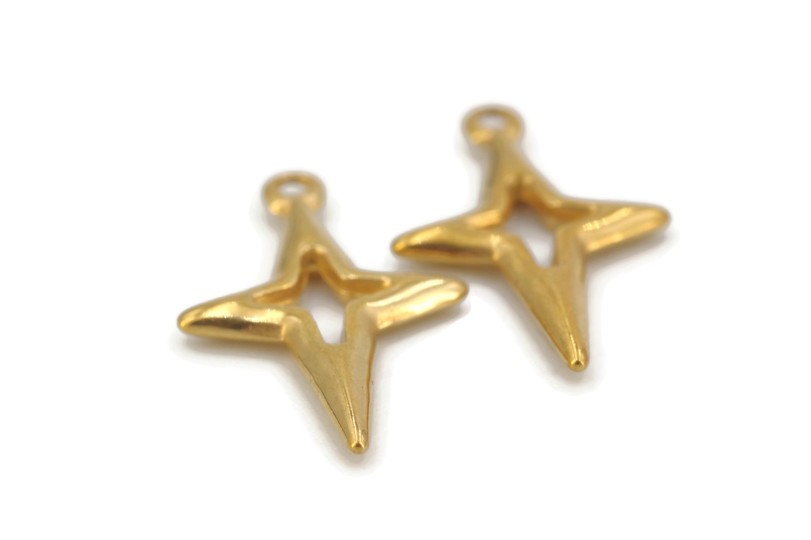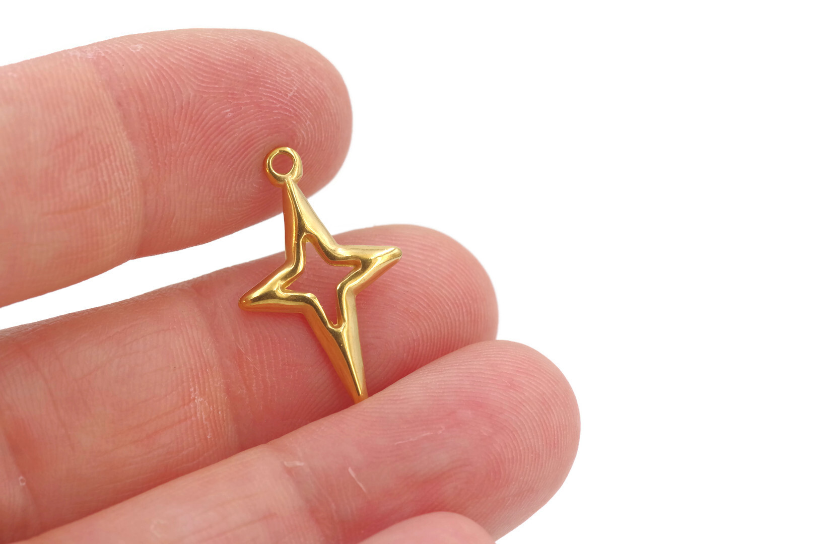 Ajoutez une touche céleste et moderne à vos créations DIY avec cette breloque étoile filante dorée en acier inoxydable, au design ajouré et graphique.