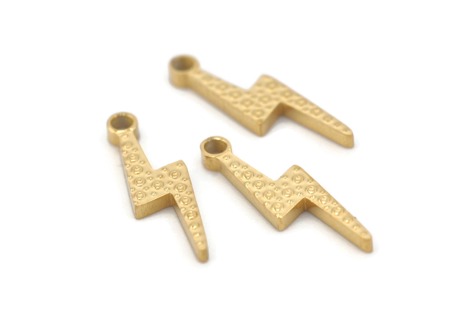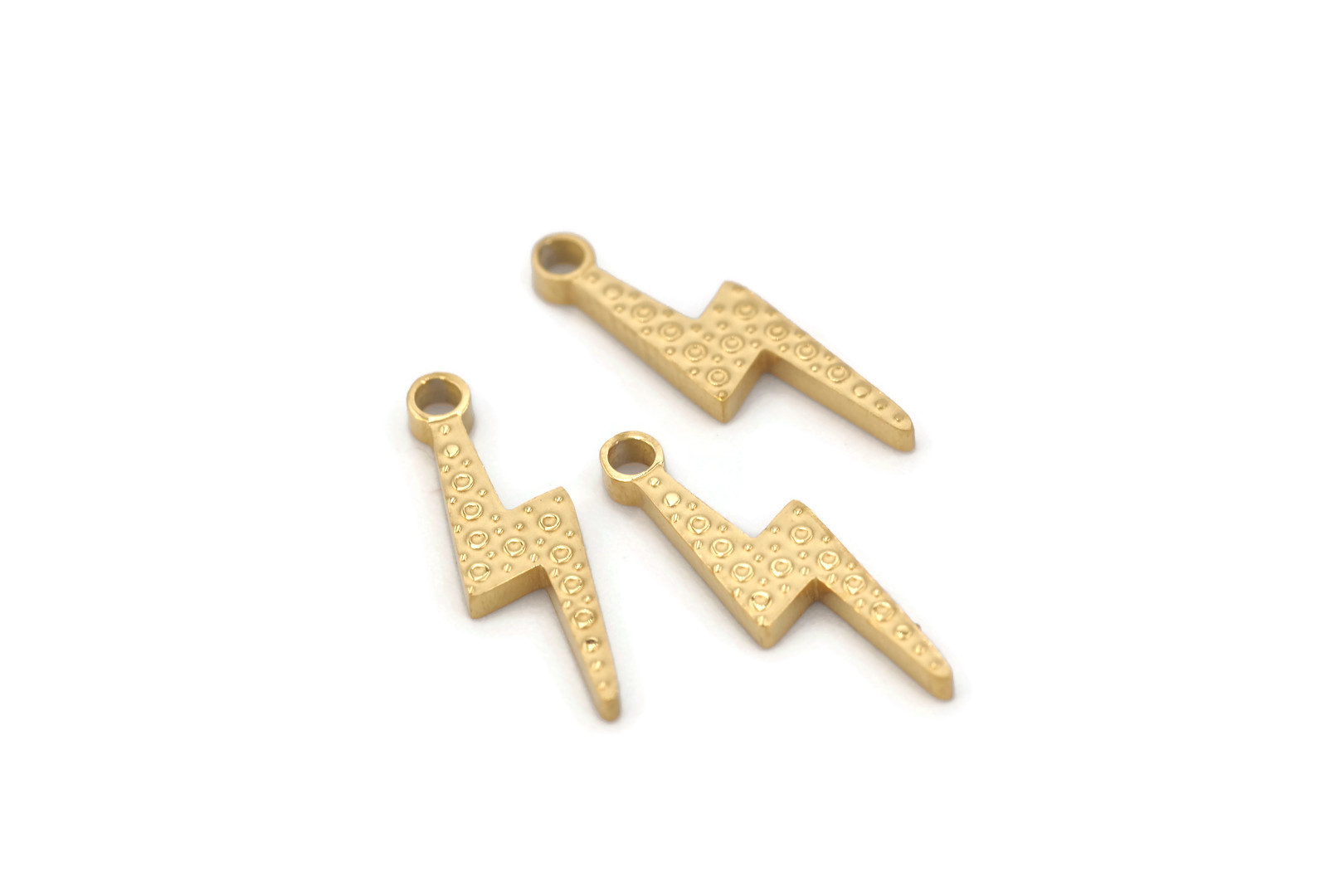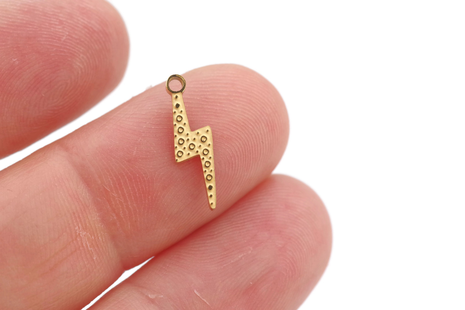 Ajoutez une dose d’énergie à vos créations avec cette breloque éclair doré texturée en acier inoxydable, idéale pour composer des bijoux modernes, expressifs et puissants.
