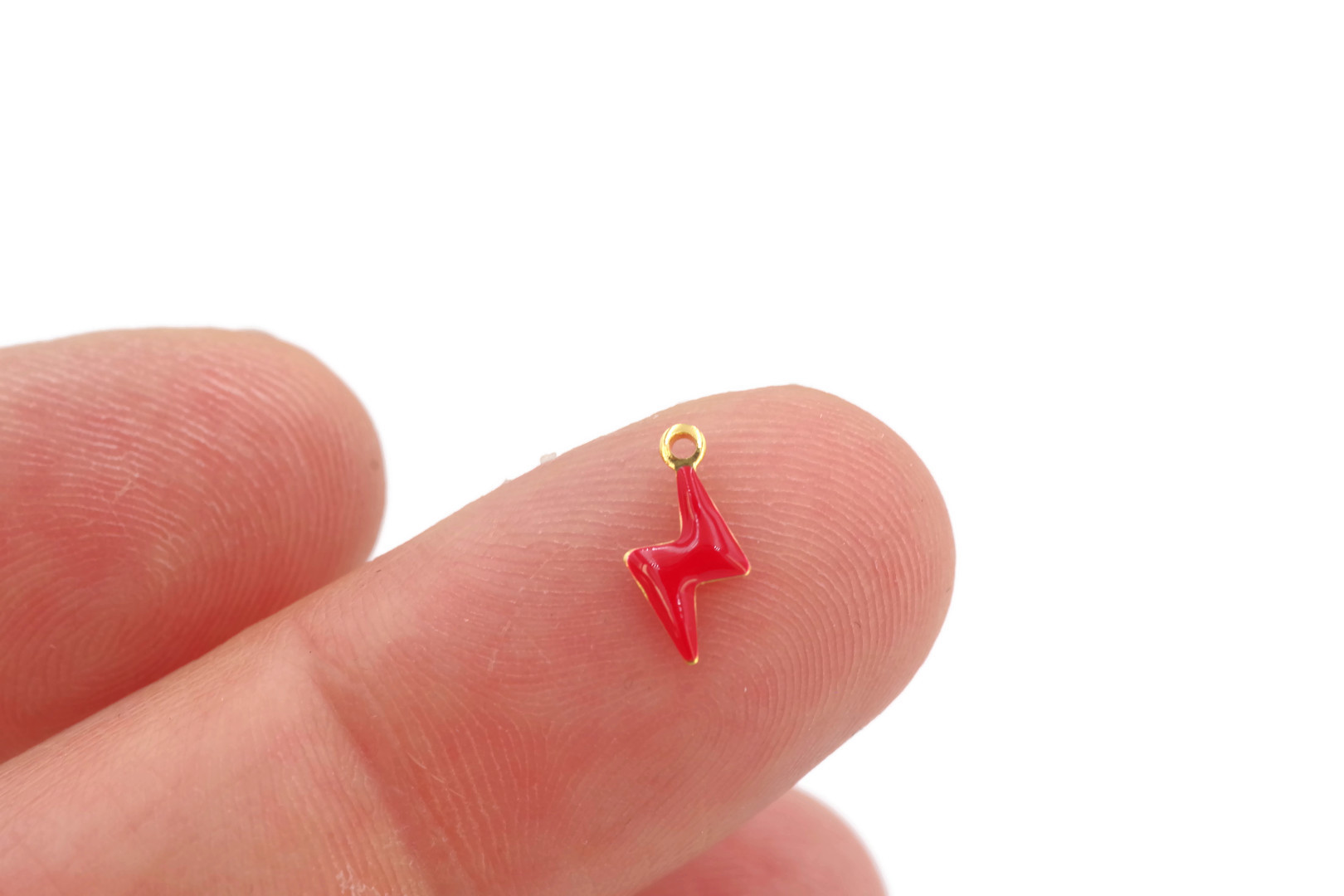 1 Mini breloque éclair rouge – Émail sur métal doré – Dimensions : 10 x 5 mm - Acier Inoxydable