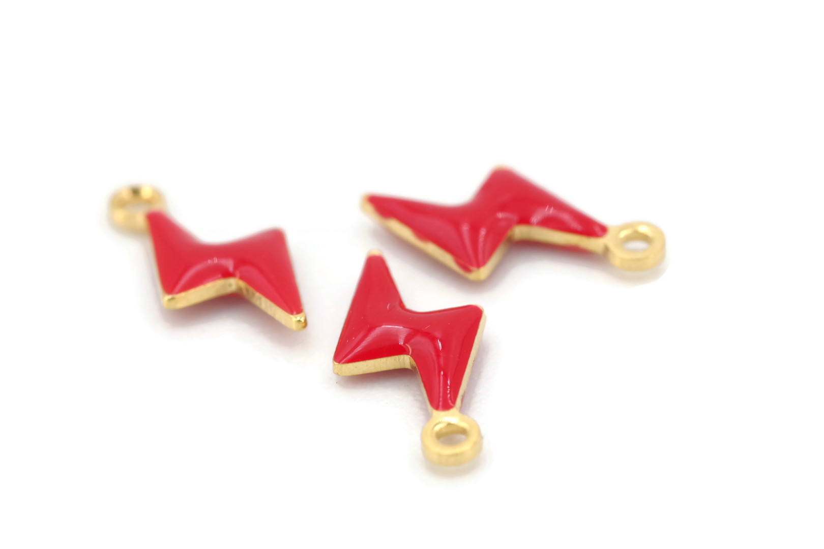 Ajoutez une touche pop et électrique à vos créations avec cette mini breloque éclair rouge en métal doré émaillé, parfaite pour des bijoux DIY colorés, vitaminés et ultra-tendance.