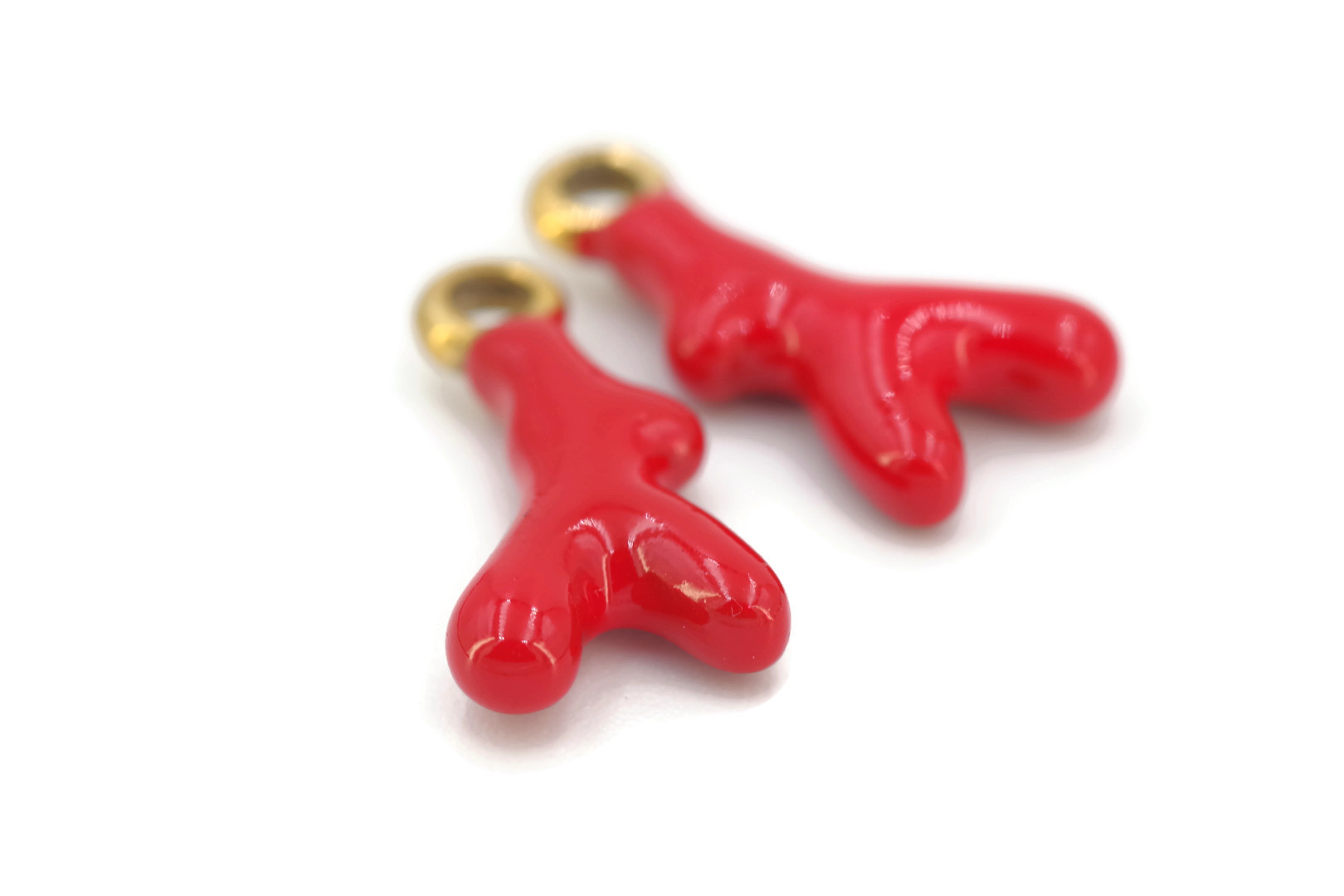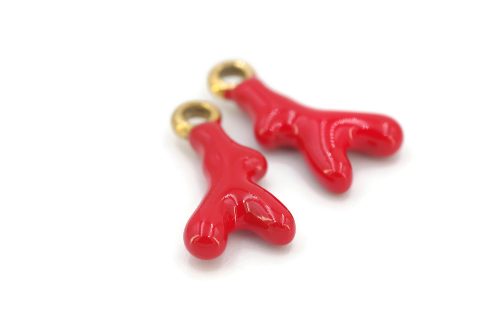 Charm pendentif en forme de corail rouge stylisé, en acier inoxydable doré avec finition émaillée rouge. Dimensions 18 x 9 x 3,5 mm, trou de 2 mm. Résistant à l’eau, à l’oxydation et à l’usure, idéal pour un usage quotidien. À associer à des breloques marines, perles ou éléments colorés dans vos colliers, bracelets, créoles ou bijoux charms. Vendu à l’unité.