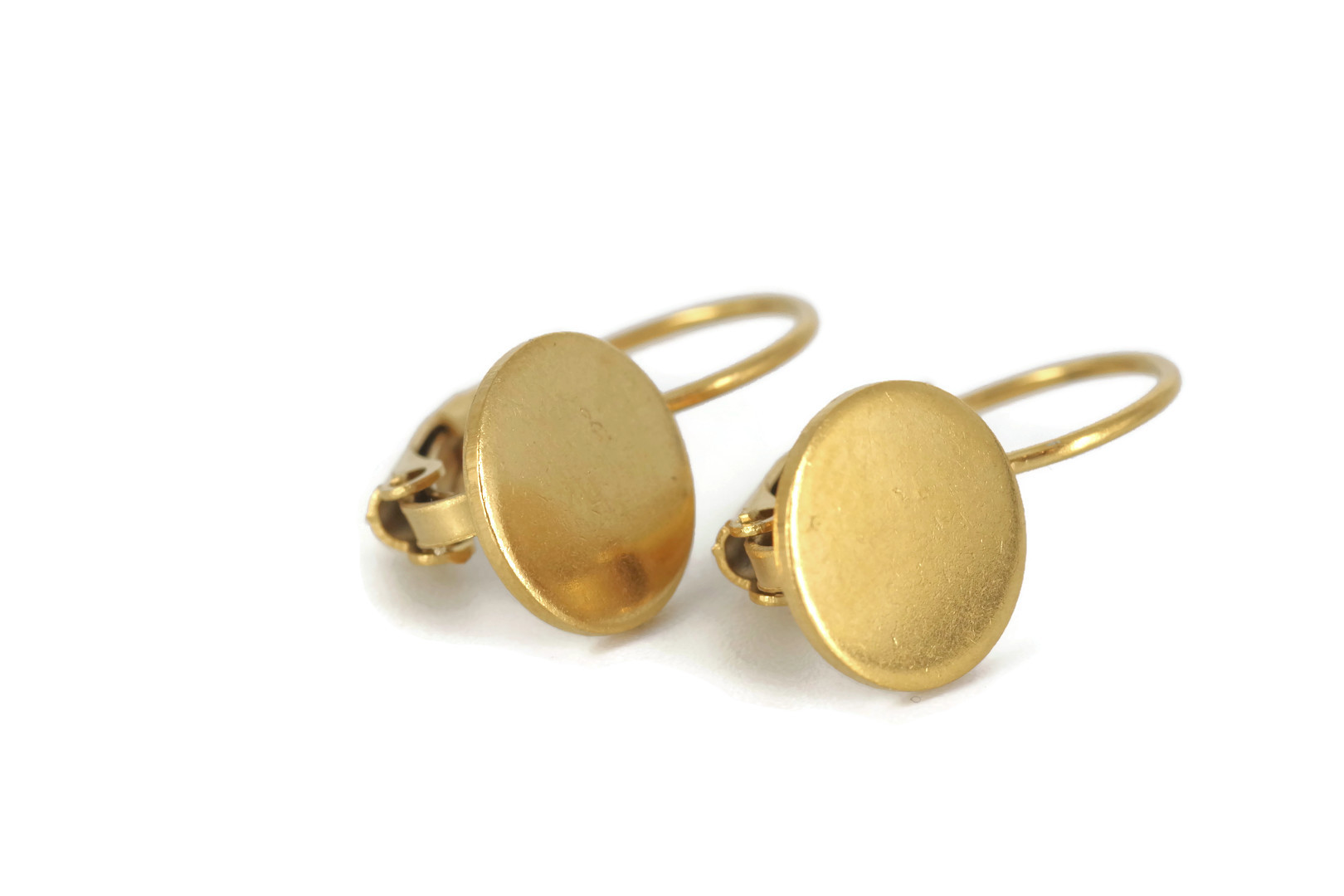 6 Supports Boucles d’Oreilles Dormeuses avec plateau de collage Diamètre 10 mm - Acier Inoxydable Couleur Doré
